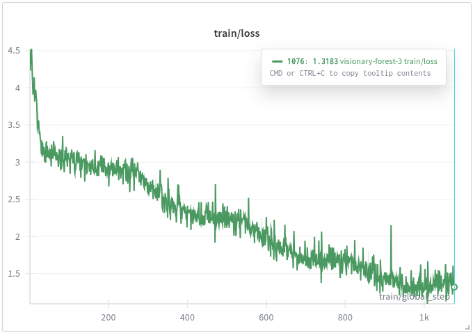 Note on Overfitting: The evaluation loss shows early signs of overfitting, which suggests stopping the fine tuning early at 3 epochs. However, the training loss remains reasonable at 4 epochs, so I decided to continue fine tuning for the full 4 epochs.